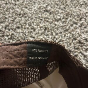 Skateboarding brown cap featuring bold orange Emerica logo. Mesh back for comfort.
