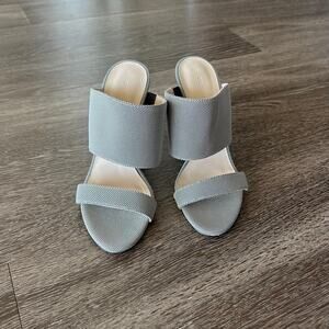 Emerson Fry Block Heel Mules Size US 7 Gray Canvas Double Strap Open Toe Sandals