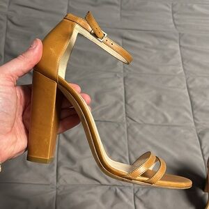 Step out in style with these elegant brown ankle strap heels. Perfect for any occasion.