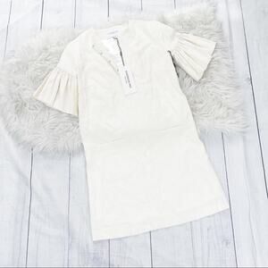 Emerson Fry Ivory Mod Ruffle Bell Sleeve Split Front Linen Dress XXS New