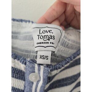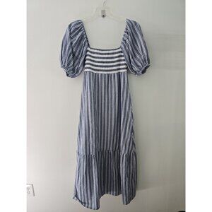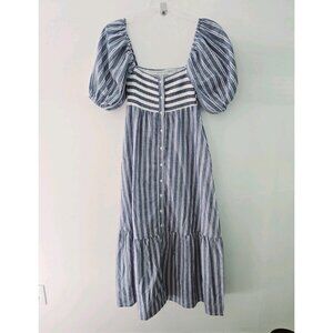 Emerson Fry Love Tomas Cotton Smock Striped Maxi Cottagecore Ruffle Dress S XS