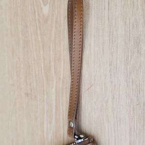 Stylish tan wristlet clutch with a snakeskin textured design. Perfect for a night out.