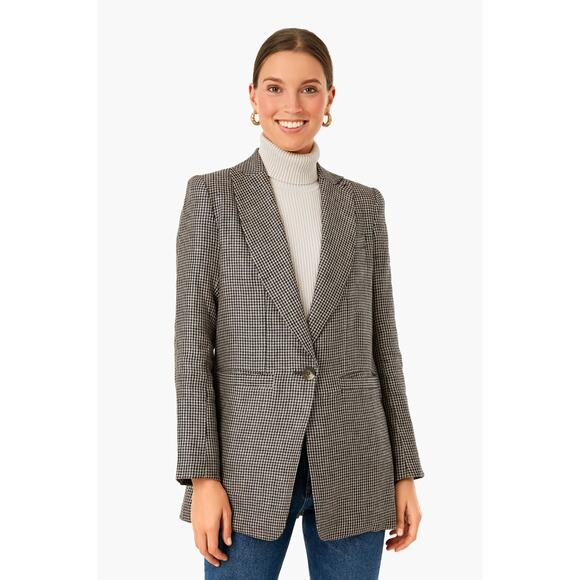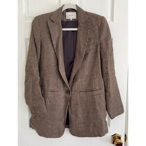 Emerson Fry Dinner Jacket Blazer Brown Houndstooth Linen