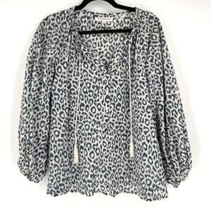 Emerson Fry India Collection Bardot Womens Organic Leopard Peasant Top Charcoal Size XS