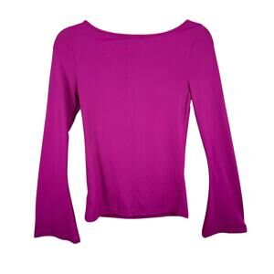 Emerson Lang Hot Pink Ribbed Knit Long Bell Sleeve Asymmetrical Neckline Top M