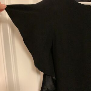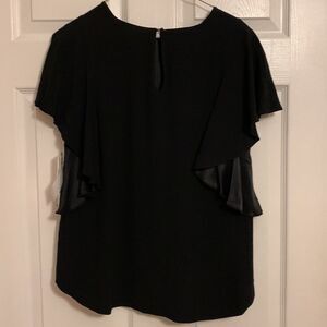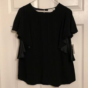 NWT Emerson Rose Black Flutter Sleeve Black Short-sleeve Top, size M. New with tags, never worn. Gorgeous black top with ruffles at the sleeves. Also has keyhole back closure with stylish button. Would look great with dress pants or jeans.
