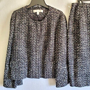 Emerson Rose Blazer Skirt Set Womens Medium Black Parisian Tweed Speckled Zipper