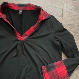 Emery Rose Black Red Plaid Collared Long Sleeve Layered Shirt Top Size XL