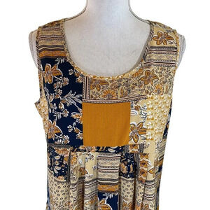 Emery Rose Dress Large Multi Pattern Floral Polka Dot Leaves Sleeveless Thin