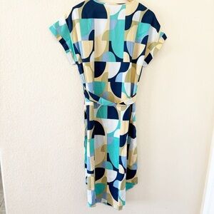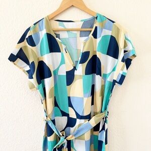 Emery Rose Geo Print Colorblock Notched Neck Dolman Sleeve Belted Dress Size XL