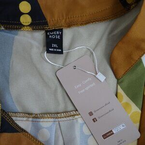 Emery Rose Retro-Inspired Tunic Top Women Size 2XL Earthy Wave Print NEW
