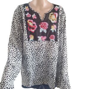 Emery Rose Size  5X (4XLLightweight Leopard Print Flower Embroidered Blouse