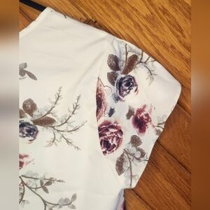 Emery Rose Small White And Floral Airbrush Rose Print Women's Top.