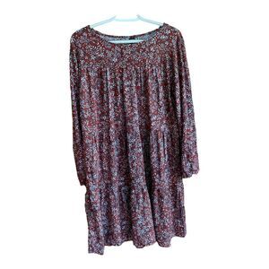 Emery Rose Tiered rust red white black floral Dress Lightweight Size Large L