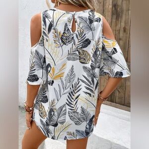 Emery Rose Tropical Cold Shoulder Cut Out Blouse