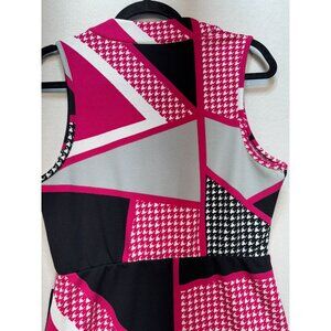 Emery Rose Womens Sheath Dress Size L Pink Black Houndstooth Abstract Sleeveless