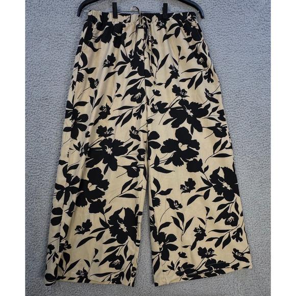 Emery Rose Womens Tan Black Floral Wide Leg Pants XL Regular