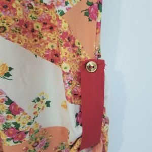 Peach with a Multicolored Floral print