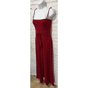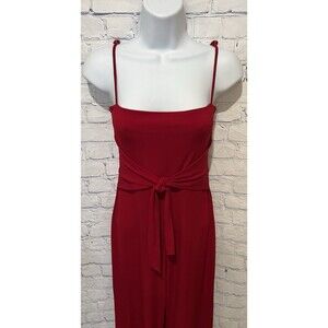 The Emi Jumpsuit in Bright Red by L'ACADEMIE is a stylish and versatile one-piece outfit perfect for various occasions. This sleeveless jumpsuit features adjustable straps, a pull on closure, and is made from a comfortable polyester blend material. The bold red color adds a pop of vibrancy to your wardrobe, making it ideal for travel, casual outings, parties, or even formal events. This jumpsuit is designed for a women's size XS, offering a flattering and chic look. 14 inches pit to pit, 24 inch waist, 29 inch inseam and total of 48 inches long. Smoke free home.