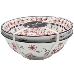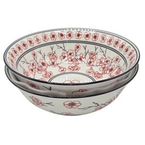 Emika Floral 8.25in Asian Ceramic Ramen Noodle Bowl Set Of 2pc White Dusty Rose
