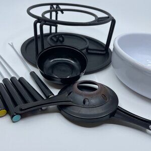 Thanks for your interest in supporting the sustainable, circular movement of preowned items! Please feel free to contact me with any questions about this ceramic Emile Henri fondue pot with burner and forks