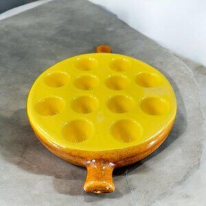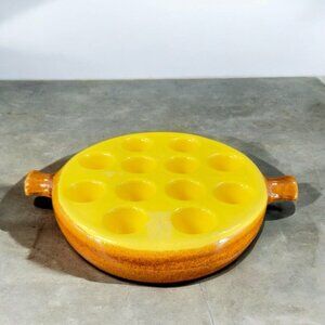Emile Henry 12 Hole Escargot Snail Dish Red Made In France Yellow Brown Glaze
