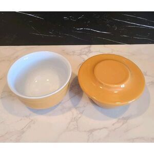 Emile Henry Butter Bell Ceramic | Yellow & White Colorway | 16.10 Made in France | 3" x 4½" | It is in Good USED Condition. | *Flaw: There's a tiny crack on the inside of the bell, not a through-and-through. Please refer to the photos for condition and Weight before packaging: 1.1 lb.