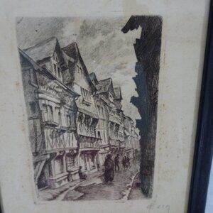 Emile LEROI (1887-1944) Engraving France Pencil Signed Lisieux La Rue Aux Fevres