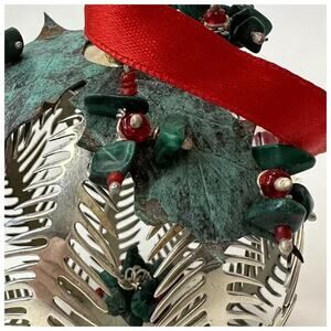 Design features palm tree forms with holly and berry leaf above. Measures Approx 3" Tall. Excellent Condition!