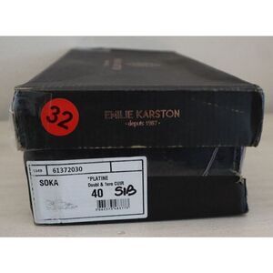 Emilie Karston Women Sz 40 US 9 Platinum Leather Soka Flat Sandals SIB