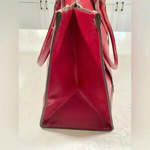 Emilie M. Vintage Red Vegan Leather Tote w/Strap Detail Med SZ
