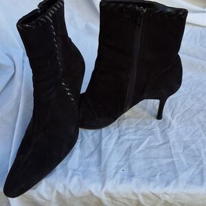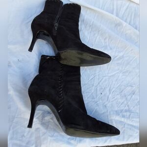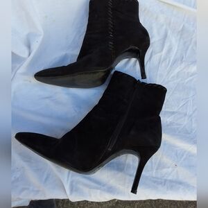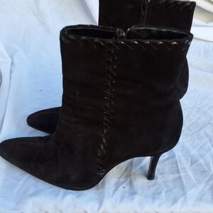 Emilio Bertolini black suede whipstitched stiletto booties 8.5