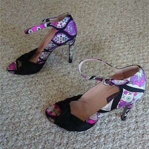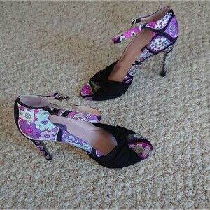 Emilio PUCCI purple floral Suede & satin open toe Stiletto Heels size 37.5