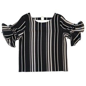 Emilio Pepe Top Women’s Flutter Puff Sleeves Blouse Black White Size Medium