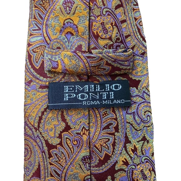 Emilio Ponti Tie Necktie Mens Colorful Paisley Design Office Old Money