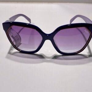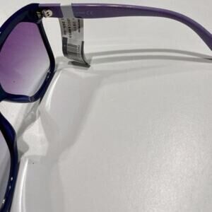 Style: Geometric - Size: 59-16-140mm (eye-bridge-temple) - Frame Color: Purple - Lens Color: Violet gradient - Frame Material: Acetate - Lens Material: Plastic - 100% UV protection - Imported that is a kate spade case and a Ted Baker cleaning cloth oversized oval