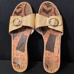 Emilio Pucci Beige Patent Leather Cork Wedge Slide Slip-on Sandals sz 40 Italy