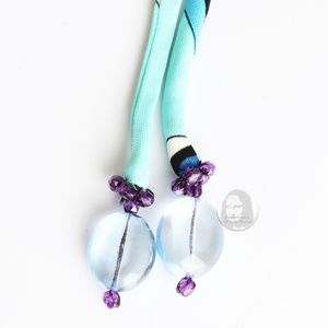 Authentic, preowned, almost vintage Emilio Pucci silk jersey rope belt, made in the 2000s. Colorful print in shades of blue, aqua, white and black with translucent blue dangle beads and tiny purple crystals! Reminiscent of Pucci's earlier pieces by Coppola e Toppo!