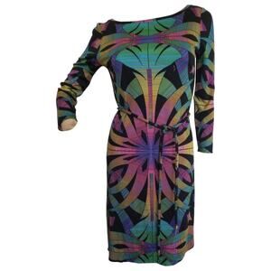 Emilio Pucci Black Multicolor Signature Print Belted Dress 4 US