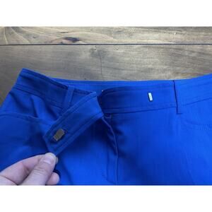 These Emilio Pucci Blue 100% Virgin Wool Pants Slacks in size 6 are a luxurious addition to any wardrobe. Made in Italy, they feature a slim fit and a sleek skinny leg style, perfect for creating a sleek and sophisticated look. The solid blue color adds a pop of color to any outfit, while the slimming features make them flattering for any body type. These vintage-inspired pants are ideal for both casual and dressy occasions, showcasing the brand's signature style and quality craftsmanship.pre owned good condition we ship fast measurements are in the pictures
