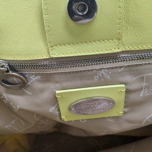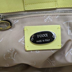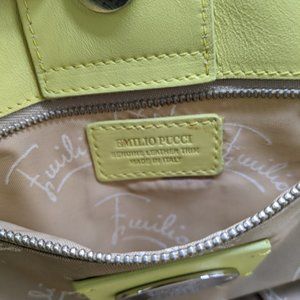 Emilio Pucci items are making a comeback and this bag is a perfect example of his vintage style. The yellow-tan-green pattern makes it immediately recognizable as a Pucci item!