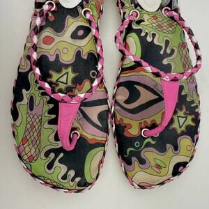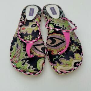 Emilio Pucci Multicolor Printed Flip Flop Slides Shoes Pink/Black | Fit US 9.5