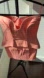 Elegant peach strapless dress with a peplum design. Perfect for special occasions.