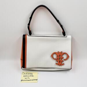 Beautiful Geometric Top Handle Bag with high contrast White and Orange Leather