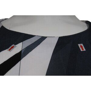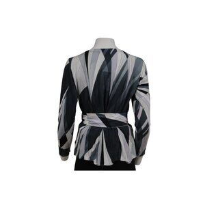 Emilio Pucci Print Long Sleeve Top IT 40 Medium Gray White Viscose Belted Blouse