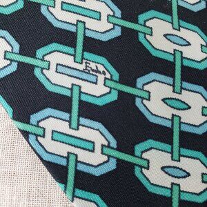 Emilio Pucci Silk Tie Black Teal Geometric Vintage Italy Saks Fifth Ave