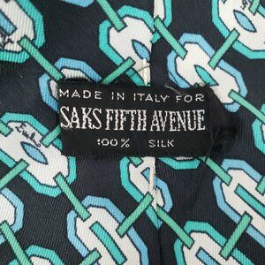 Emilio Pucci For Saks Fifth Avenue Vintage Silk Tie Made in Italy Black Teal Geometric
