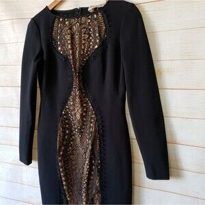 Emilio Pucci Stretchy Lace Inset Long Sleeve Sheath Mini Dress Size 44 Black