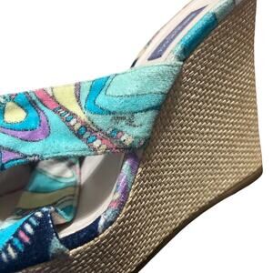 Emilio Pucci Terry Cloth Criss Cross Raffia Wedges Size 39