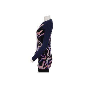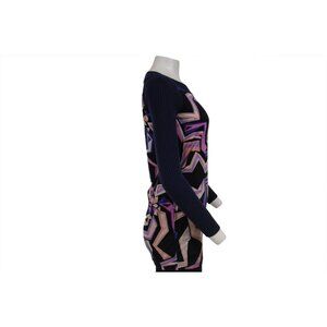 Emilio Pucci Womens Midi Long Sleeve Crew Neck Dress US 6 Blue Purple Wool Long